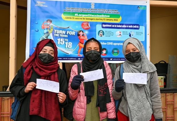 KARGIL, JANUARY 03, 2022: The Covid-19 vaccination for children from 15 to 18 years age group was kick-started in Kargil district today during which 540 children received the first dose at various vaccination sites.