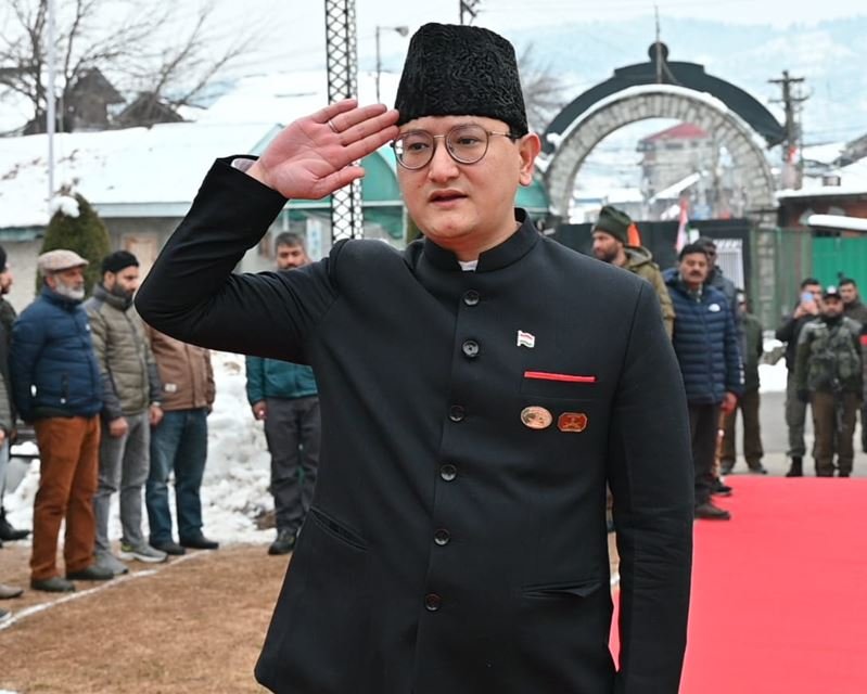 AT BARAMULLA: On the occasion of the 77th Republic Day, Deputy Commissioner Baramulla, Minga Sherpa unfurled the tri-color and took the salute at DC Office Complex.