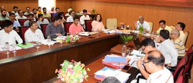 JAMMU, AUGUST 13: Additional Chief Secretary (ACS), Jal Shakti, Shaleen Kabra today chaired a meeting to review the progress on implementation of Jal Jeevan Mission (JJM) across J&K with special focus on  Jammu, Samba, Kathua, Poonch and  Rajouri districts  at Convention Center here.