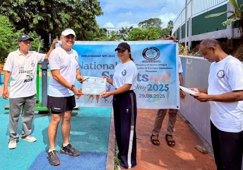 Aizawl, Mizoram, Aug 29, 2025:Amit Sharma, Director Census Operations, Mizoram, and Secretary to Government, ICT Department of Mizoram today led a walkathon event here in the capital city Aizawl on the occasion of National Sports Day under Khelo Bharat Niti – 2025 so as to strongly symbolize that maintaining healthy lifestyle is a pre-requisite and success mantra for every citizen of the nation.