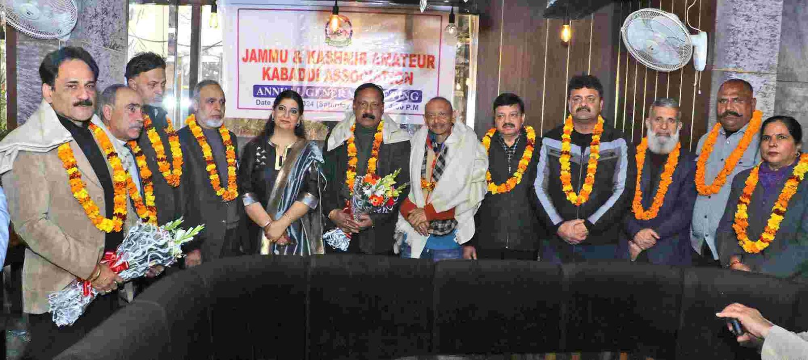 Jammu, 05-02-2024 : Jammu & Kashmir Amateur Kabaddi Association today unanimously re-elected Mr. Anil Gupta as President for the third consecutive term. In the Annual General Meeting held in Jammu all the representatives from the different districts of Jammu & Kashmir (UT) were present in the AGM where the election body announced by Returning Officer Advocate Mrs.Anshuja Tak, who was appointed as Returning Officer of J&K Amateur Kabaddi Association by Jammu & Kashmir Sports Council to conduct the elections. The names of the elected office bearers announced by Returning Officer who were elected unanimously for the period 2024 to 2028 are Mr.Anil Gupta President, the President will have one Senior Vice-President Mr.Mohd. Sayed Baba, two Vice-Presidents Mr.Arun Gupta and Mr.Ghulam Mohammed Ganaie, while Mr.Kuldeep Kumar Gupta will take up the responsibility of General Secretary, two Joint Secretaries Mr.Gulzar Ahmad Ahanger and Mr.Abdul Rahman Padder, Treasurer Mr.Anil Modi and three Executive members of the Committee Mr.Tanveer Ahmed, Mr. Fazal Hussain and Mrs. Radha Bakshi.
