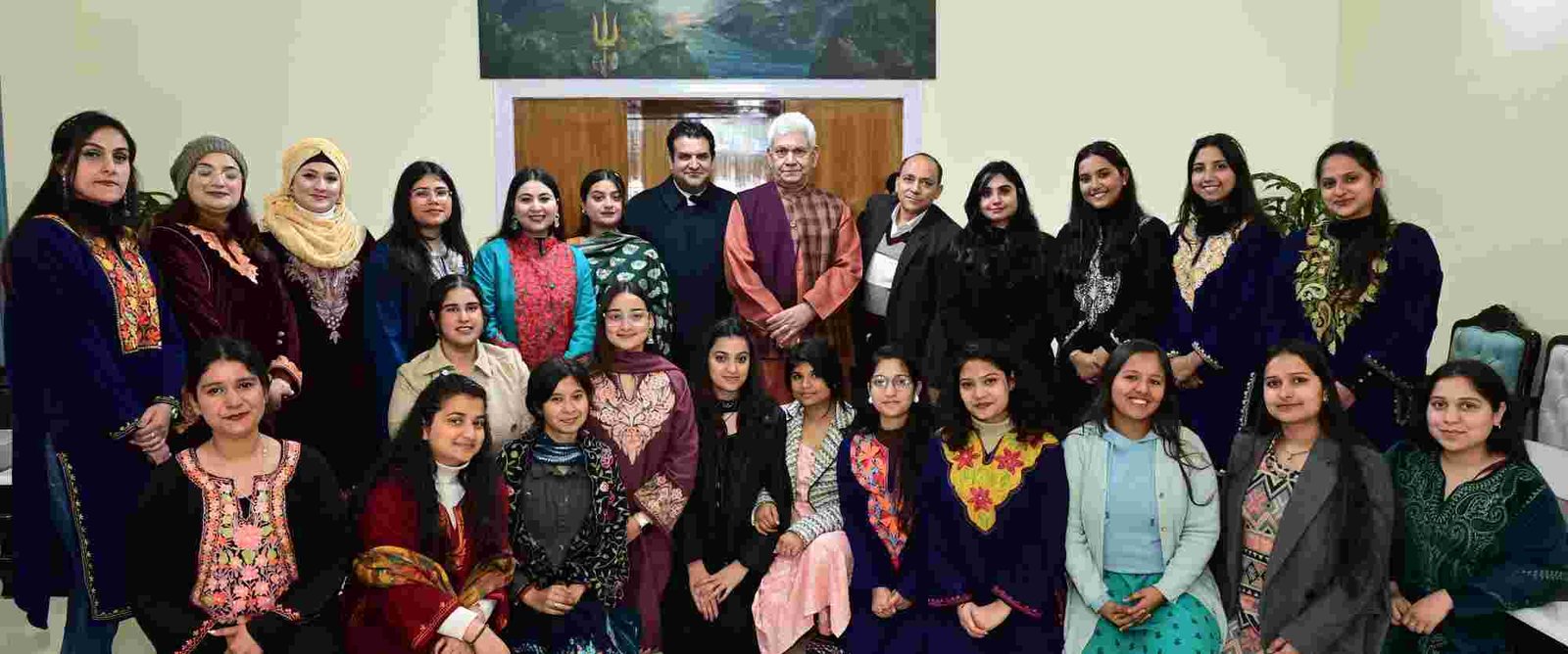 JAMMU, FEBRUARY 04: Lieutenant Governor Shri Manoj Sinha interacted with the artists from Jammu Kashmir, who participated in Vande Bharatam Dance Festival at the Republic Day Parade at Kartavya Path, New Delhi.