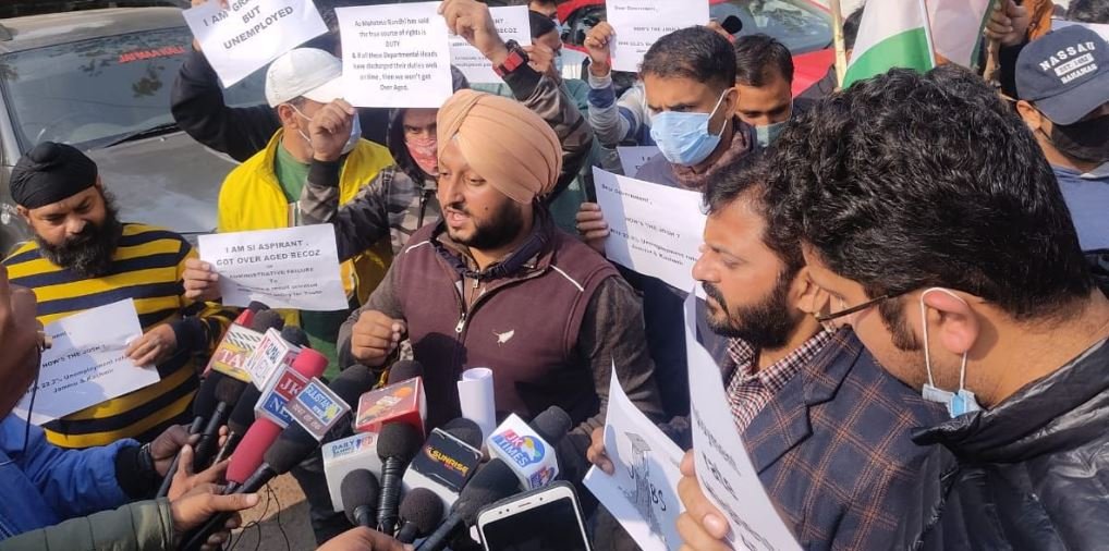 JAMMU, NOV 27: Nimrandeep Singh Bhullar, Youth activist & General Secretary, JKPYC along with many SI aspirants has expressed serious concern over the rising unemployment in the Union Territory of Jammu and Kashmir. Hundreds of youth from various part of j&k has joined Singh to hold the protest against the rising unemployment rate of 22.2% in JKUT.