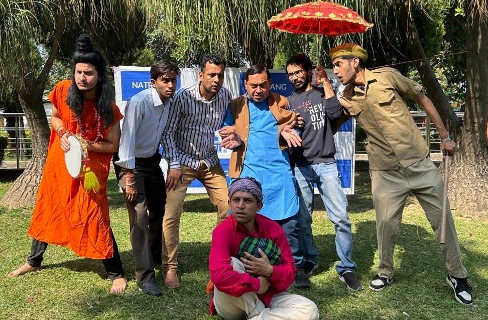 Jammu 12-10-2025: Balwant Thakur’s Dogri play ‘Gatte-ch-Maanu’ (Man in the ditch) directed by Neeraj Kant staged here today at Rani Park, Jammu under its weekly theatre series ‘Sunday Theatre’ . Based on Krishna Chander’s famous Urdu classic short story ‘Khadda’, the play is a hard hitting satire on the decay of human values. Balwant Thakur has adapted it in such a contemporary manner that the audience is put to a situation in feel it as the happening of the day and much closer to their surroundings and life sufferings.
