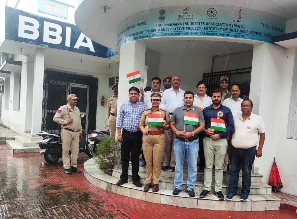 15-08-2022 : An impressive Function was held today at Bari Brahmana Industries Association Office, Bari Brahmana to celebrate the 76th Independence Day of India in the presence of Sh. Tarun Singla, Sr. Vice President, Ms. Shivali Kotwal (JKPS), S.D.P.O, Bari Brahmana, Mr. M. Sayeed (JKAS) District Mineral Officer, Samba, Sh. Ajay Langer, Vice President BBIA, Sh. Rajesh Jain, Secretary BBIA along with Police & Civil Defence officials, members of BBIA and Civil Society Members.