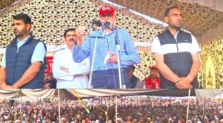 Srinagar, 11 May: The Jammu and Kashmir National Conference Vice President Omar Abdullah addressed a series of public meetings and workers conventions at Keran and Melyal on the fifth consecutive day of his ongoing campaign trail in Kupwara district.