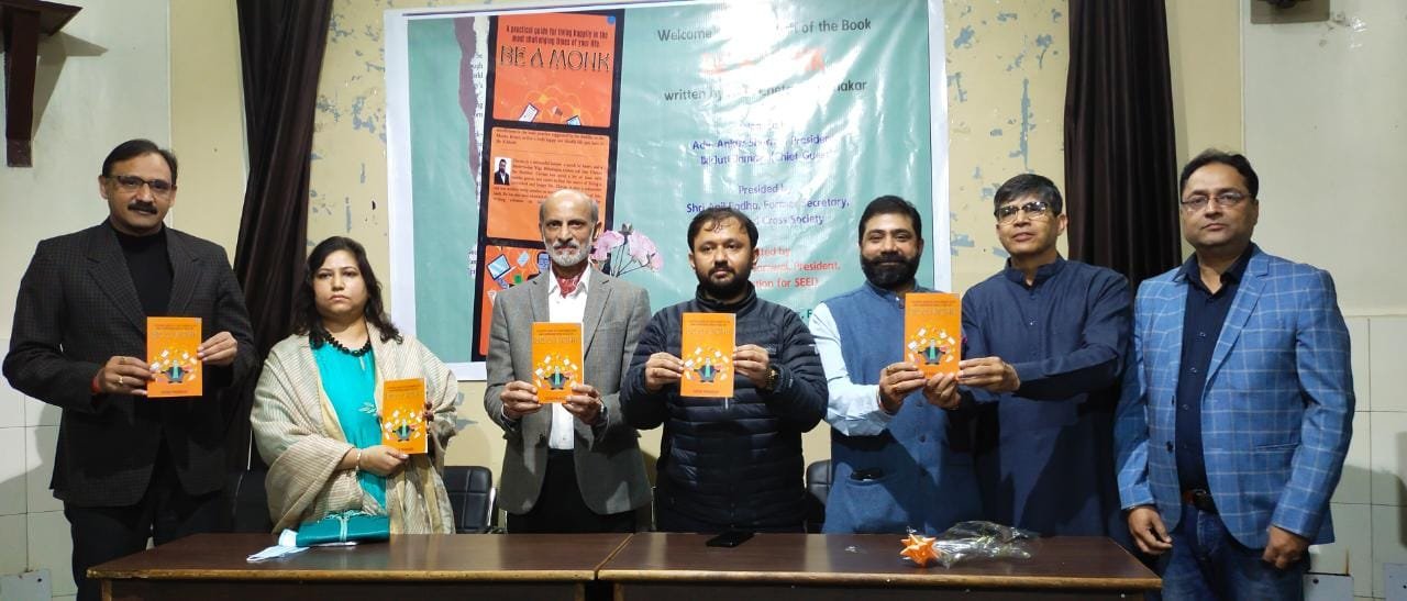 Jammu, Nov 28: In a glittering function of august gathering, the maiden Book of Adv. Chetan Prabhakar titled ‘Be A Monk’ was released by Chief guest Adv. Ankur Sharma, President, IkkJutt Jammu, and the event was presided by Shri Anil Padha, Social Activist and Former Secretary, Indian Red Cross Society, J&K, and Adv. Vishal Sharma (ASGI), in the presence of Prof. Dr. Ajay Kotwal, the Guest of Honour.