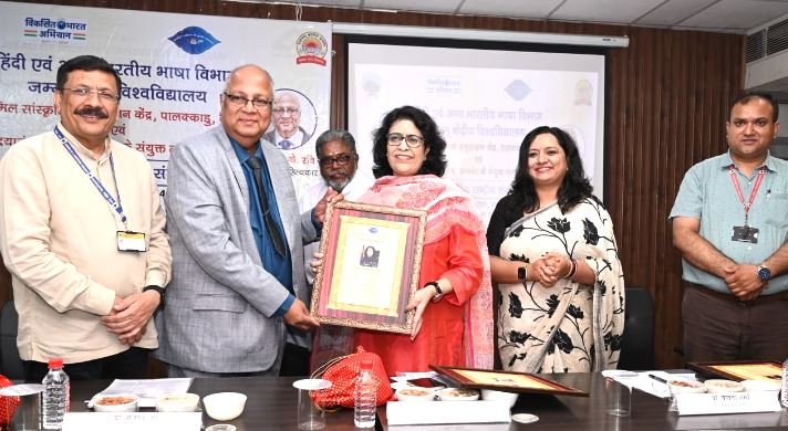 Jammu, 31 August 2024: Under the joint aegis of the Hindi and Other Indian Languages, Department of Central University of Jammu and the Tamil Cultural Research Center, Palakkadu, Kerala, a two-day national seminar titled “Vanvil K. Ravi’s Creative World and Indian Languages” was inaugurated recently. The event took place under the esteemed guidance of Hon’ble Vice Chancellor of Central University of Jammu, Prof. Sanjeev Jain.