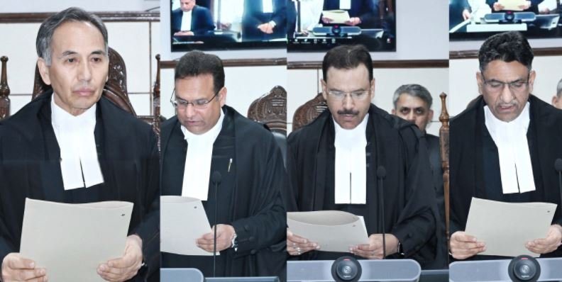 JAMMU, MARCH 17: Chief Justice, High Court of Jammu & Kashmir and Ladakh, Tashi Rabstan, today administered the Oath of office to Justice Wasim Sadiq Nargal, Justice Rajesh Sekhri and Justice Mohammad Yousuf Wani, Additional Judges, as Judges of the High Court of Jammu & Kashmir and Ladakh, in the Chief Justice’s Court Room, Jammu.