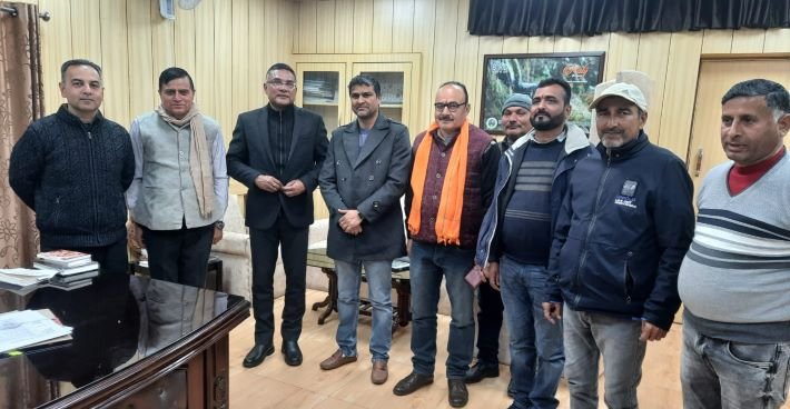 JAMMU, JAN 11: A delegation of Panchayati Raj Institution (PRI) representatives from Mahanpur, Billawar and Basohli areas led by Col Mahan Singh (Retd), Chairman District Development Council (DDC) Kathua called on the Principal Secretary PWD (R&B) J&K UT Shailendra Kumar here today and apprised him about the anomalies in the formation of new Divisions and Sub Divisions of District Kathua. The delegation comprised of Sohal Lal Gupta Sarpanch Mahanpur, Sher Singh Sarpanch Dhamlad and Darshan Kohli Sarpanch Chunnera.
