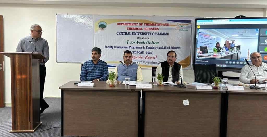 Jammu, 26th Oct 2023: Two-Week Online Faculty Development Programme in Chemistry and Allied Sciences FDPCAS – 2023 (Refresher Course) is being organized by the Department of Chemistry and Chemical Sciences, Central University of Jammu during 26th October-08th November, 2023.