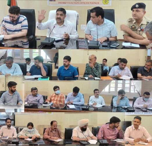 POONCH, MAY 09: In wake of the visit of VVIPs to Poonch, Deputy Commissioner Poonch, Inder Jeet today chaired a meeting of all district and Sectoral Officers here at conference Hall of DC office to review the preparations and arrangements being put in place for the smooth conduct of the tour of dignitaries to the district in ensuing days.