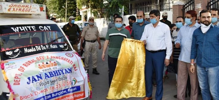 RAJOURI, SEPTEMBER 16: Deputy Commissioner, Mohammad Nazir Sheikh on Tuesday flagged off an awareness Van here from DDC office complex to disseminate information among the general public regarding the ongoing Jan Abhiyan.