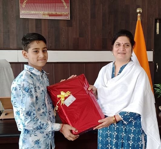 REASI APRIL 23: Deputy Commissioner Reasi Babila Rakwal today felicitated budding artist Parmbeer Singh Kamal Singh of Dheran Tehsil Thakrakote.