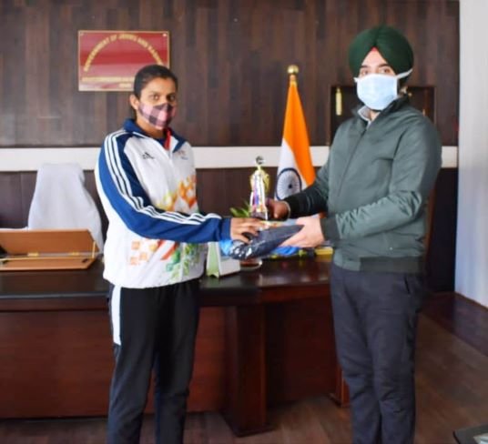 Deputy Commissioner, Charandeep Singh felicitated the outstanding sportsperson of the district and appreciated her achievements. He wished her good luck for upcoming events.