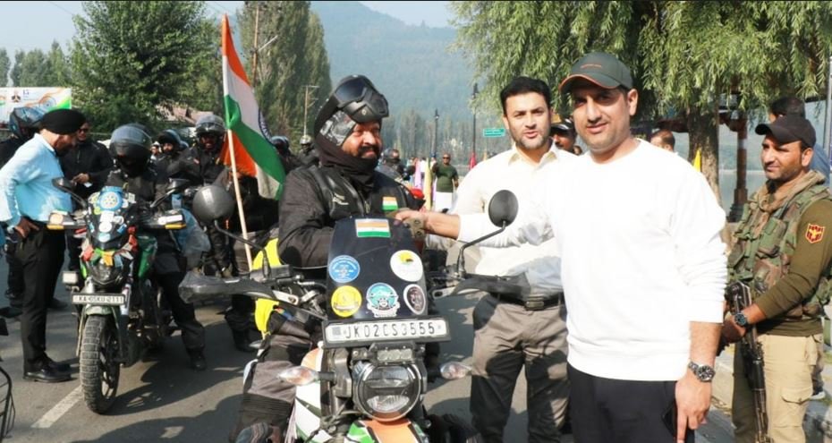 DC Srinagar receives Freedom Riders bike Rally contingent on the banks of iconic Dal Lake