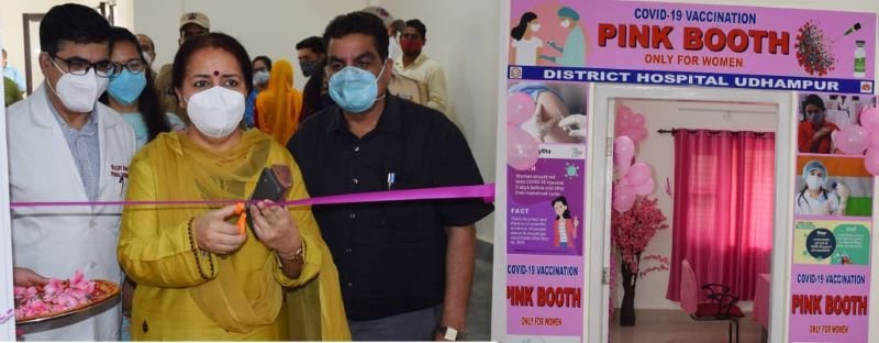 UDHAMPUR, JULY 17: Deputy Commissioner, Udhampur Indu Kanwal Chib inaugurated pink booth Covid-19 vaccination exclusively for women in presence of Chief Medical Officer Dr. K C Dogra at District Hospital Udhampur, here the other day.