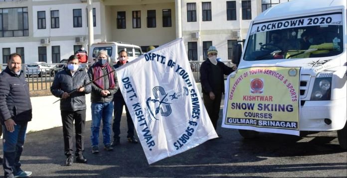 KISHTWAR, DECEMBER 10: District Development Commissioner, Kishtwar, Ashok Sharma today flagged off a group of 10 students for snow skiing courses to be organized at Gulmarg by the Department of Youth Services and Sports under the Guidance of Director General Youth Services & Sports, Dr. Saleem -ur-Rahman.