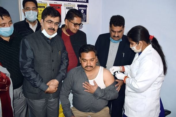 Medical Superintendent District Hospital Udhampur Dr. Vijay Raina, District Health Officer, Dr. Yaseen Malik, Dr. Chanderkanta & other medical officers were also present during the vaccination.