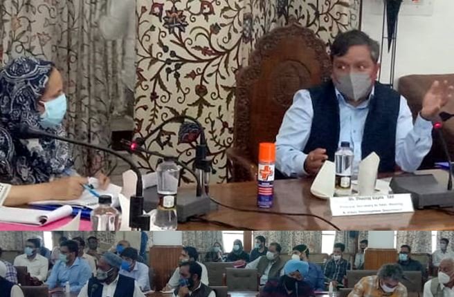 SRINAGAR, JUNE 19: Principal Secretary Housing & Urban Development Department (H&UDD), Dheeraj Gupta today discussed Action Plan for the year 2021-22 under Capex Budget for the Urban Local Bodies (ULBs) Kashmir with heads of ULBs at a meeting here.
