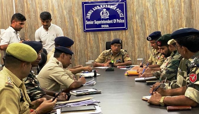 JAMMU, SEPTEMBER 13: Dr. Sunil Gupta, Deputy Inspector General Police, Doda, Kishtwar, Ramban Range (DKR), during his 3 day tour to Doda and Kishtwar in connection with the visit of Lieutenant Governor, Sh. Manoj Sinha, today took a security review meeting with the Senior Police, Army and CAPF officers at PCR Doda.