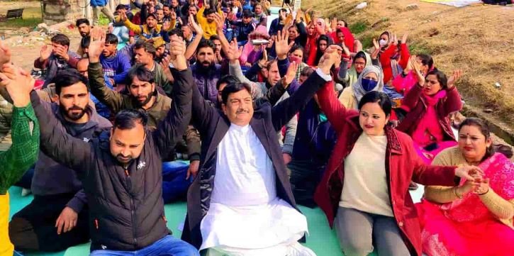 23-01-2023 : Sunil Dimple president mission statehood jammu kashmir sat on dhrna outside BJP office, trikuta nagar, in support of the agitating NYC, rehbrey janglat, sehat and rehbrey khel aspirants. extends full support.