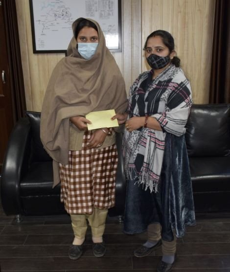Sarpanch Parnote-A, Kailasho Devi handed over Rs.20,000 to the Lakshmi Devi widow of the deceased Auto Driver, Kartar Singh of Parnote, Block and Tehsil Ramban. The amount has been provided by the District Administration out of the District Red Cross Fund.