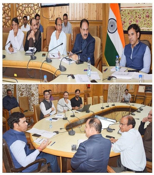 SRINAGAR, SEPTEMBER 25 : The Divisional Commissioner (Div Com) Kashmir, Vijay Kumar Bidhuri Monday reviewed the functioning of Health Department, Food Civil Supplies & Consumer Affairs and School Education Department with respect to ongoing Major Projects, upcoming projects, deliverables, implementation of UT & Centrally Sponsored Schemes in a meeting, held, here.
