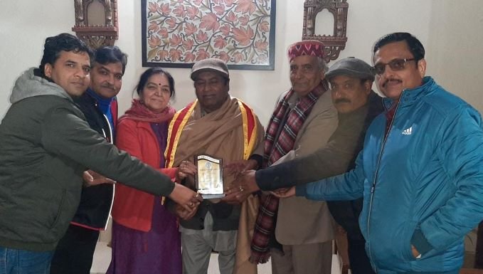 As per the directions of Th Gulchain Singh Charak (FormerMinister) President Dogra Sadar Sabha J&K. Krishan Kumar Bharadwaj President Dogra Sadar Sabha Udhampur Unit alongwith other prominent personalities of Udampur called upon Sh Balraj Bakshi and honoured him by presenting an Award of Excellence.