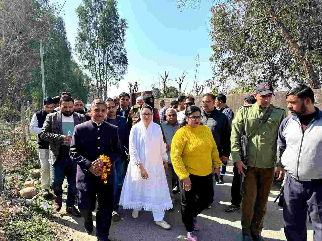 Jammu, 14-02-2024: Chairperson of J&K Waqf Board Dr Syed Darakhshan Andrabi today toured the Akhnoor area in Jammu and inspected many Waqf-managed properties. She paid obeisance at some spiritual shrines also and took stock of the facilities at these shrines. Dr Andrabi met some devotees at the shrine of Baba Ghulam Shah and Balla Da Bagh to get on-the-spot feedback regarding facilities and arrangements and improvements required.