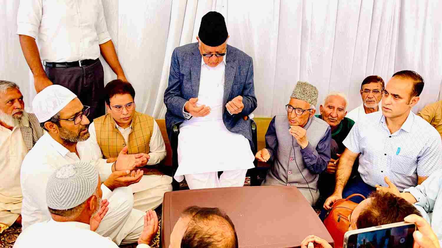 Dr Farooq was accompanied by Chief Spokesperson Tanvir Sadiq, senior party leader Hasnain Masoodi on the occasion. Joined by local party functionaries he offered fatiha for the deceased and prayed for fortitude to the bereaved Madni and Mufti families on the occasion.