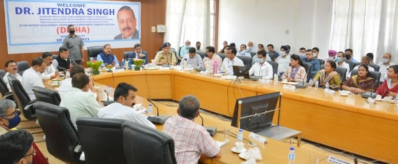 KATHUA, APRIL 10:- Union Minister of State (Independent Charge) for the Ministry of Development of North Eastern Region and Minister of State for Prime Minister’s Office, Dr. Jitendra Singh today chaired District Development Coordination & Monitoring Committee (DISHA) meeting to review the progress of various centrally sponsored schemes (CSS’s) being implemented in District Kathua.