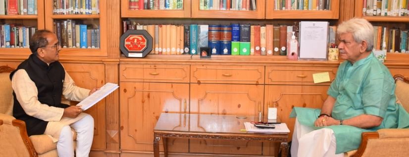 SRINAGAR, AUGUST 30: Dr. Nirmal Singh, former Deputy Chief Minister called on Lieutenant Governor, Manoj Sinha at Raj Bhavan here today. Dr. Singh submitted a charter of demands to the Lt Governor related to development of unexplored tourism potential areas, expediting the work on Tawi Riverfront, besides widening of Dayalachak- Challan road and construction of Lakhanpur-Mahanpur-Basohli-Dunera road.