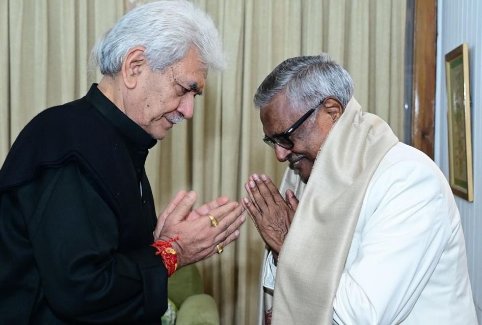 SRINAGAR, OCTOBER 28: Sh Satya Pal Jain, Additional Solicitor General of India and former Member of Parliament, called on Lieutenant Governor Shri Manoj Sinha at Raj Bhawan today.