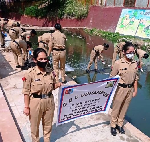 UDHAMPUR, APRIL 11: The NCC Cadets of 2nd J&K Girls Battalion in collaboration with Botany Department of the Government Degree College Udhampur today took out an awareness rally to make people aware about the importance of clean water and specially the sanity of river Devika for their own wellbeing here today.