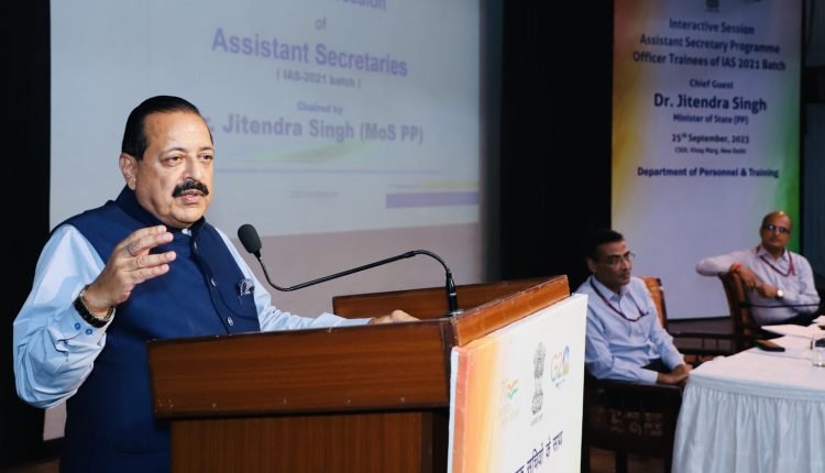 NEW DELHI, Sept 25 : IAS officers joining service today are blessed with the privilege of being the architects of India at 2047 when the nation celebrates 100 years of independence, said Dr Jitendra Singh, Union Minister of State (Independent Charge) Science & Technology, MoS PMO, Personnel, Public Grievances, Pensions, Atomic Energy and Space.