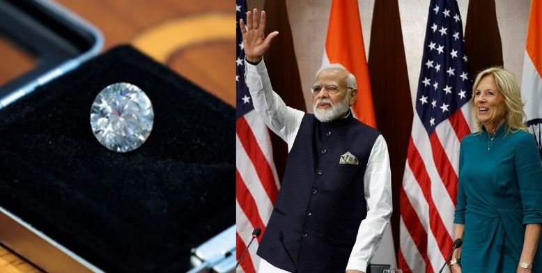 22-06-2023 : India’s Prime Minister, Narendra Modi, presented an exquisite eco-friendly lab-grown diamond to the First Lady of the United States, as confirmed by Commerce and Industry Minister Piyush Goyal in a tweet. The diamond, considered India’s diamond or “Bharat Ka Heera,” was carefully placed in a Papier mâché box crafted in Kashmir. This diamond is a testament to India’s commitment to eco-friendly practices, as it was created using solar and wind power, emitting only 0.028 grams of carbon per carat. The gemological lab, IGI (International Gemological Institute), has certified its authenticity and quality.