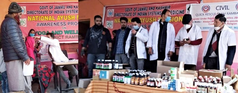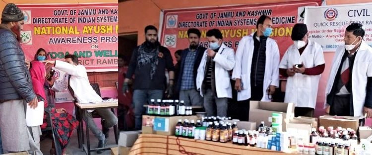 RAMBAN, FEBRUARY 24: The department of the Indian System of Medicine in collaboration with the Civil Quick Rescue Team (NGO) today organized a free medical checkup camp at Beulla area of Panchyat Gandote in Block Ramban.