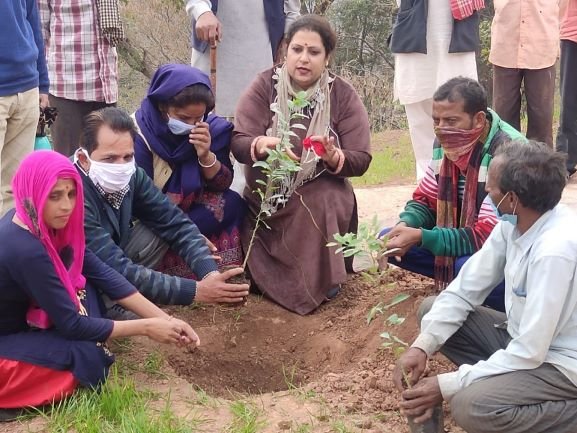 UDHAMPUR, FEBRUARY 13: To control the soil erosion and raise the water table in the area,  a plantation drive was today conducted here at Prowa Jagir watershed area by the Project Manager Integrated Water Management Programme (IWMP), Udhampur Sapna Kotwal along with field functionaries.