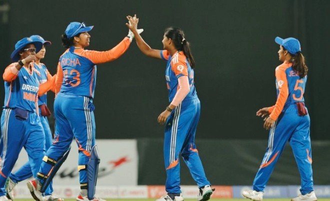 The Indian bowling attack set the platform for the win, despite challenging conditions with heavy dew. Kranti Gaud, Deepti Sharma, and N. Shree Charani claimed a wicket each, while debutant Vaishavi Sharma impressed with economical bowling, conceding only 16 runs in four overs.