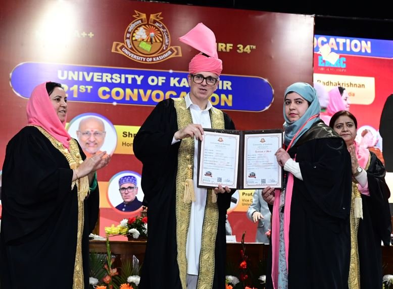 He was addressing the 21st Convocation ceremony of the University of Kashmir, where Vice President of India C. P. Radhakrishnan was the Chief Guest. Lieutenant Governor and Chancellor Manoj Sinha, Minister for Education Sakina Itoo, Advisor to the CM Nasir Aslam Wani, Vice Chancellor Nilofer Khan, members of the University Council, faculty and graduating students were present on the occasion.