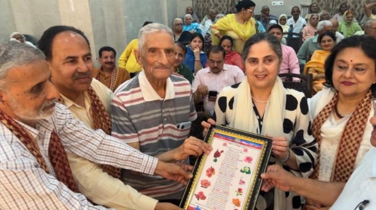 Jammu, 31-05-2025: J & K Academy of Art, Culture, and Languages, in collaboration with Nami Dogri Sanstha (Regd.) Jammu, organized a Dogri Music Programme based on Dogri Songs for inmates of ” Virdh Ashram ” at Ambphalla Jammu . The programme was presided over by I.D.Soni eminent Educationist and presently President of Old Age Home Ambphalla whereas , Madam Harvinder Kaur , Secretary Jammu and Kashmir Academy of Art , Culture and Languages (JKAACL) Prof Anupama Sharma Patron NDS , Capt .Lalit Sharma IFS , APCCF ( Retd.) Convener NDS and Advocate Dogra Harish Kaila President NDS also shared the dias besides Rita Kharial Editor Shiraza Dogri Section (JKAACL) . Madam Harvinder Kaur was felicitated by NDS and Vrid Ashram on the occasion where as Dr. Saryansh Kumar Jain Yoga Commissioner recited a poem on the personality and works of Madam Harvinder Kaur , Secretary JKAACL .
