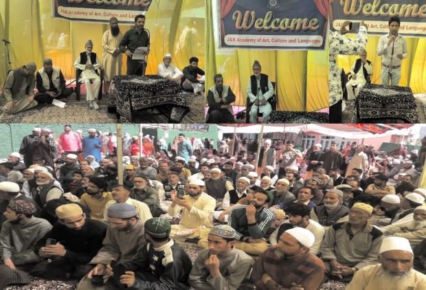 The programme was jointly organized by J&K Academy of Art, Culture and Languages (JKAACL) and Wakf intizamia Ziayarat Ashmuqam in which naats were recited and mangabats sung by popular local voices of South Kashmir.