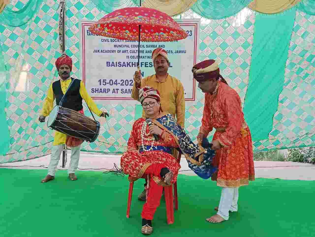 Samba 15-4-2023: To celebrate the auspicious Baisakhi, Sub Office of J&K Academy of Art, Culture and Languages, Kathua organized a colorful Music and Dance programme at the majestic Samba Fort here today. The programme was organised in collaboration with the Civil Society of Samba. Sh. Benam Tosh, JKPS, Senior Superintendent of Police, Samba was the chief guest on the occasion whereas Pawan Kohli, President of Municipal Corporation, Samba was the guest of honor. Speaking on the occasion, Benam Tosh, JKPS, Senior Superintendent of Police, Samba said that this kind of programme always lets people know about the roots. He congratulated JKAACL for organizing such a beautiful event in district Kathua. While appreciating the mesmerizing programme by the artists, he said that every artist has made him spellbound with their magical performance.