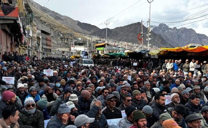 The twin protests, held amid tight security, marked a major public mobilization in Ladakh months after the September 24, 2025 violence in Leh in which four civilians were killed and around 90 persons, including several security personnel, were injured.