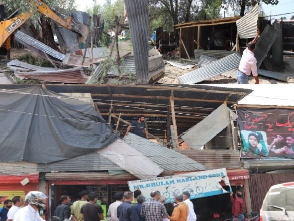 SRINAGAR, SEPTEMBER 24: The Enforcement Wing of LCMA today carried out a demolition drive in the area of Ashai-bagh Ranger-stop to demolish the illegally raised structures.