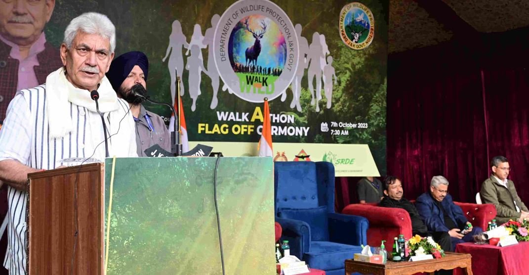 SRINAGAR, OCTOBER 07: Lieutenant Governor Shri Manoj Sinha flagged off Walkathon ‘Walk for Wildlife’, as a part of Wildlife Week 2023 from Police Golf Course to Nishat Bagh, Srinagar.