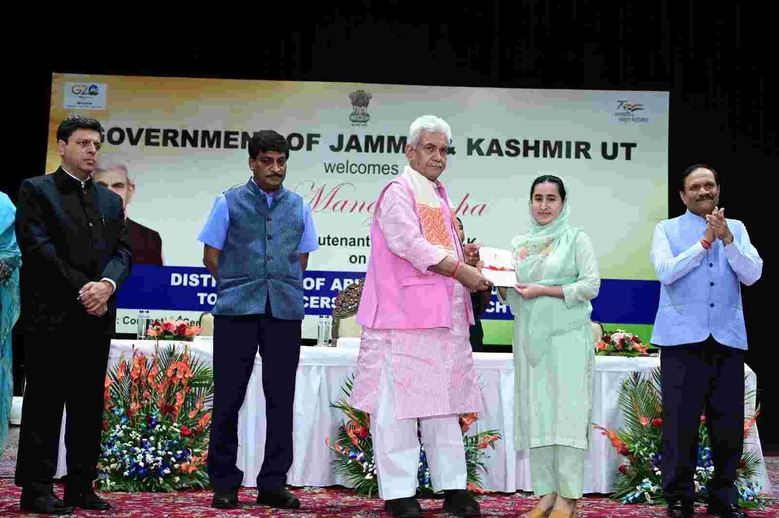 JAMMU, APRIL 25: Lieutenant Governor Shri Manoj Sinha handed over appointment orders to newly inducted recruits of J&K Administrative Service, J&K Police Service and J&K Accounts Service, at Convention Centre today.