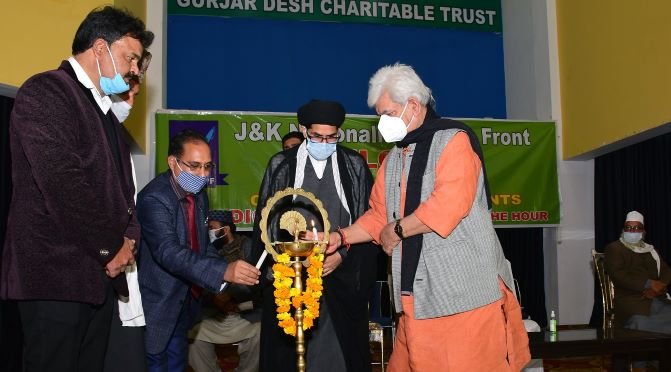 JAMMU, JANUARY 20: Lieutenant Governor, Manoj Sinha today inaugurated the Prominent Religious Leaders Conference on ‘De-radicalization’ organized by JKNPF at Gurjar Desh Charitable Trust hall at Channi Himmat Jammu.