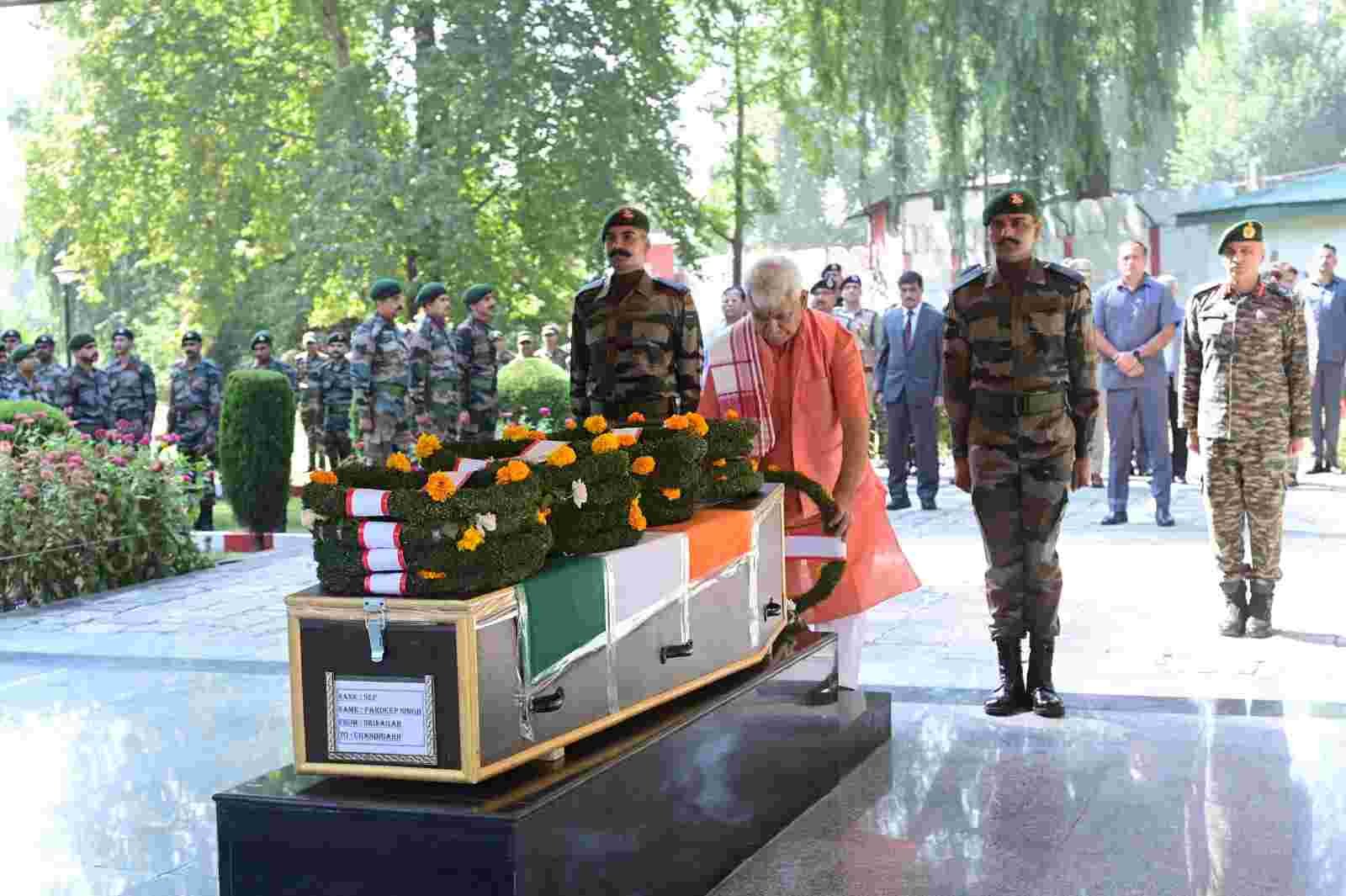 Lt. Governor Manoj Sinha Pays Homage to Sepoy Pardeep Singh, Martyred in Anantnag Anti-Terror Operation